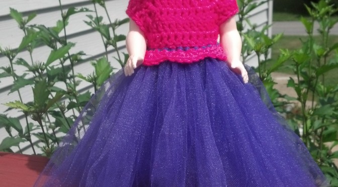 There is something about the old school just pain plastic dolls that I love and think every girl should have… but of course we have to make it a pretty dress too! H hook Worsted weight yarn 12″ doll Tulle…