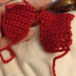 Simple (and what I did for the left arm): Pair up with first and sc around through both, placing 2 sc in the corners, making sure to stuff before closing up and leave a tail for sewing. Make sure to keep row 1 lined up since this is the “finger” side.