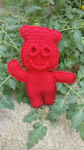 I have to say, I so enjoy these little challenges I get to see if I can create something and the pattern for it! Please, keep them coming! This one works up pretty quickly and both my kids and their friends instantly knew what it was! I was kinda worried for a moment there because my husband didn’t, but then again he doesn’t care for sweets…