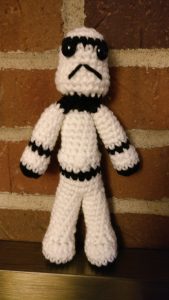 The rest is really just fine touches. For Harry, sew a lightening bolt on the forehead and sew the glasses on. For both add some hair onto the top. For Harry I took about 5″ pieces of yarn to hook them onto the head then I split the 4ply yarn into half using a needle to help. I then gave him a hair cuto to style the hair a bit. For Ron I actually just embroidered the hair on just because when I pose them all together I wanted them to look different. Personally, I am partial to how Harry’s hair turned out.